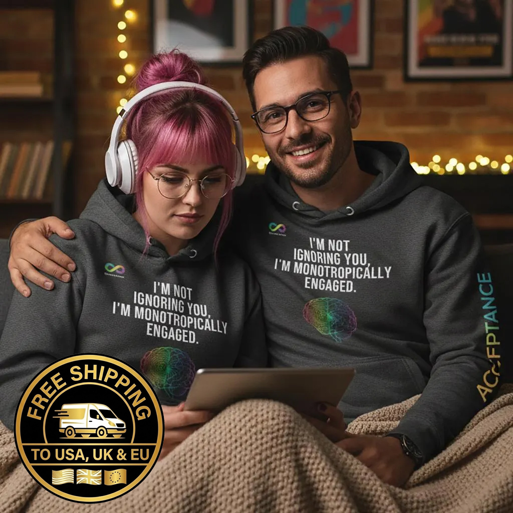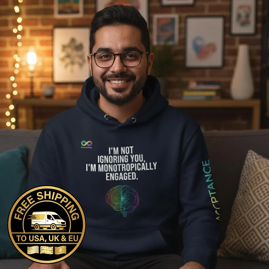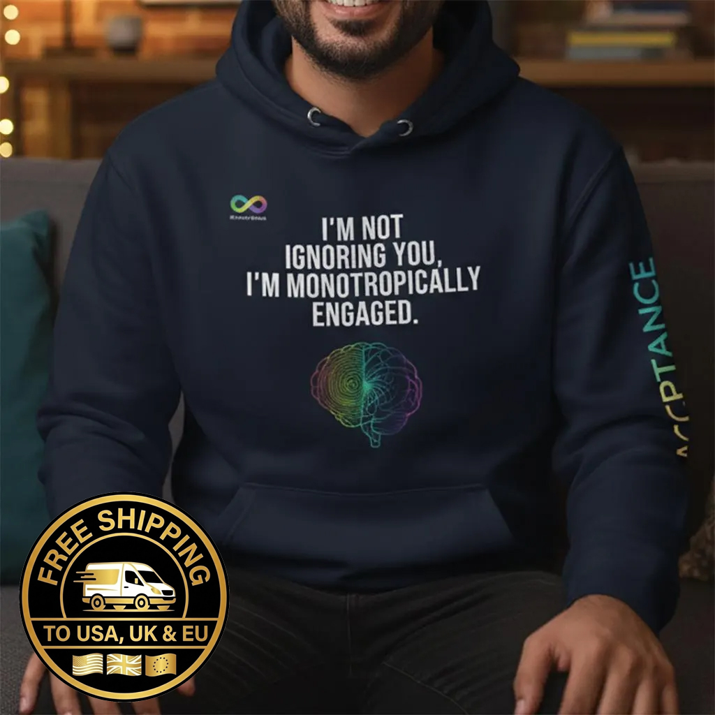 If you experience the intense, consuming focus of Monotropism—where your attention is deeply channeled into one thing at a time—this is your perfect advocacy piece. Our “I’M NOT IGNORING YOU, I’M MONOTROPICALLY ENGAGED.” hoodie is a warm, authentic way to communicate your unique cognitive style.