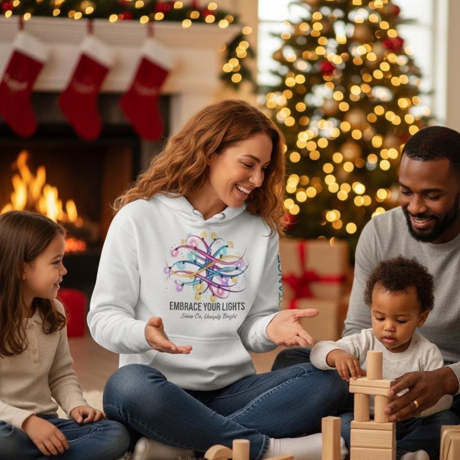 This Christmas, celebrate every unique facet of your personality with our enchanting “Embrace Your Lights” Hoodie.
