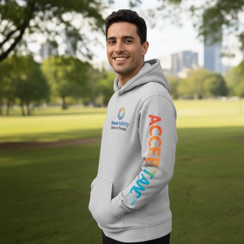 Make a powerful statement for inclusion and celebrate the beauty of neurodiversity with our “Acceptance Infinity” Hoodie.