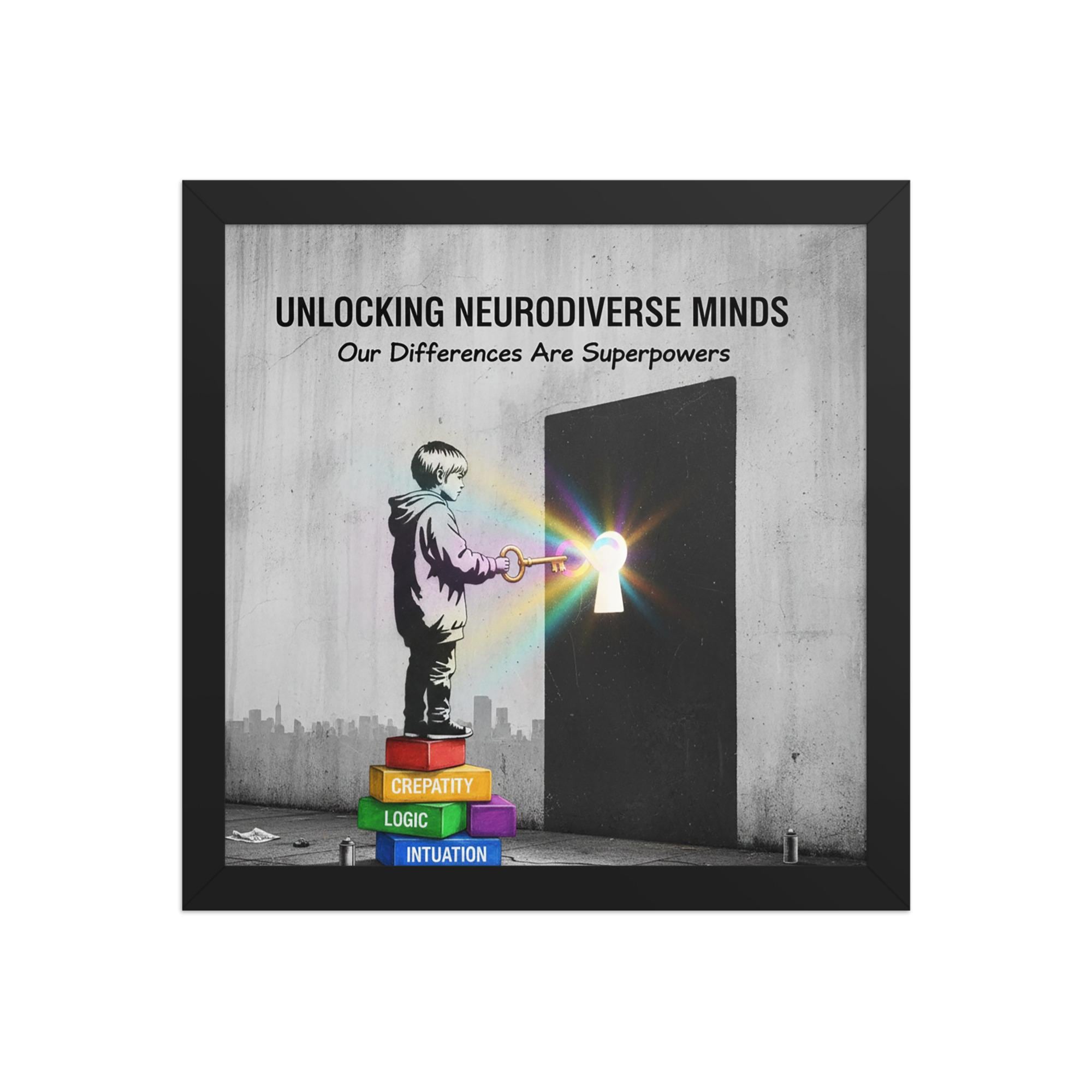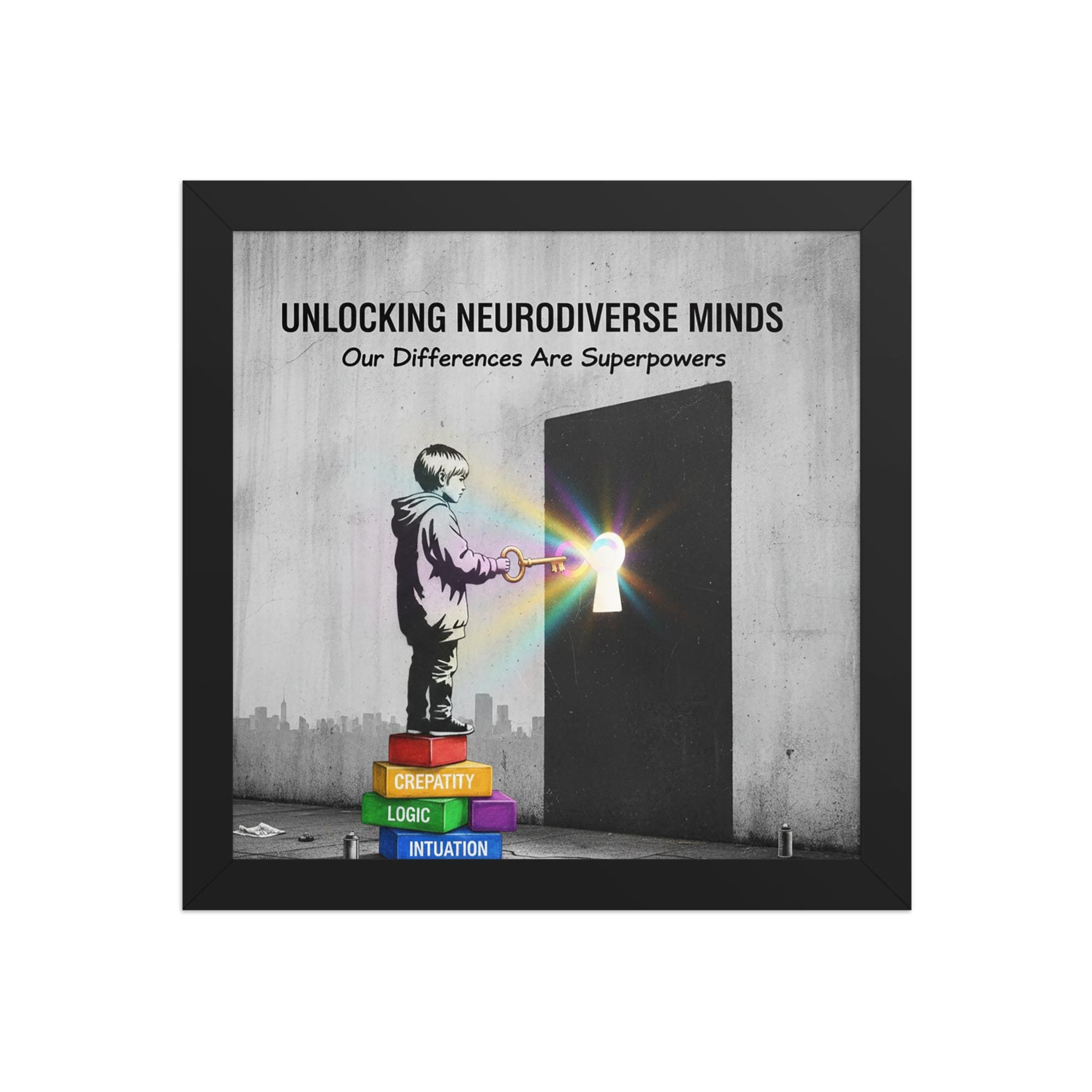 Unlocking Neurodiverse Minds Framed Poster - Neurodiversity Art Print - Autism Acceptance Unlocking Neurodiverse Minds Framed Poster – Neurodiversity Art Print – Autism Acceptance