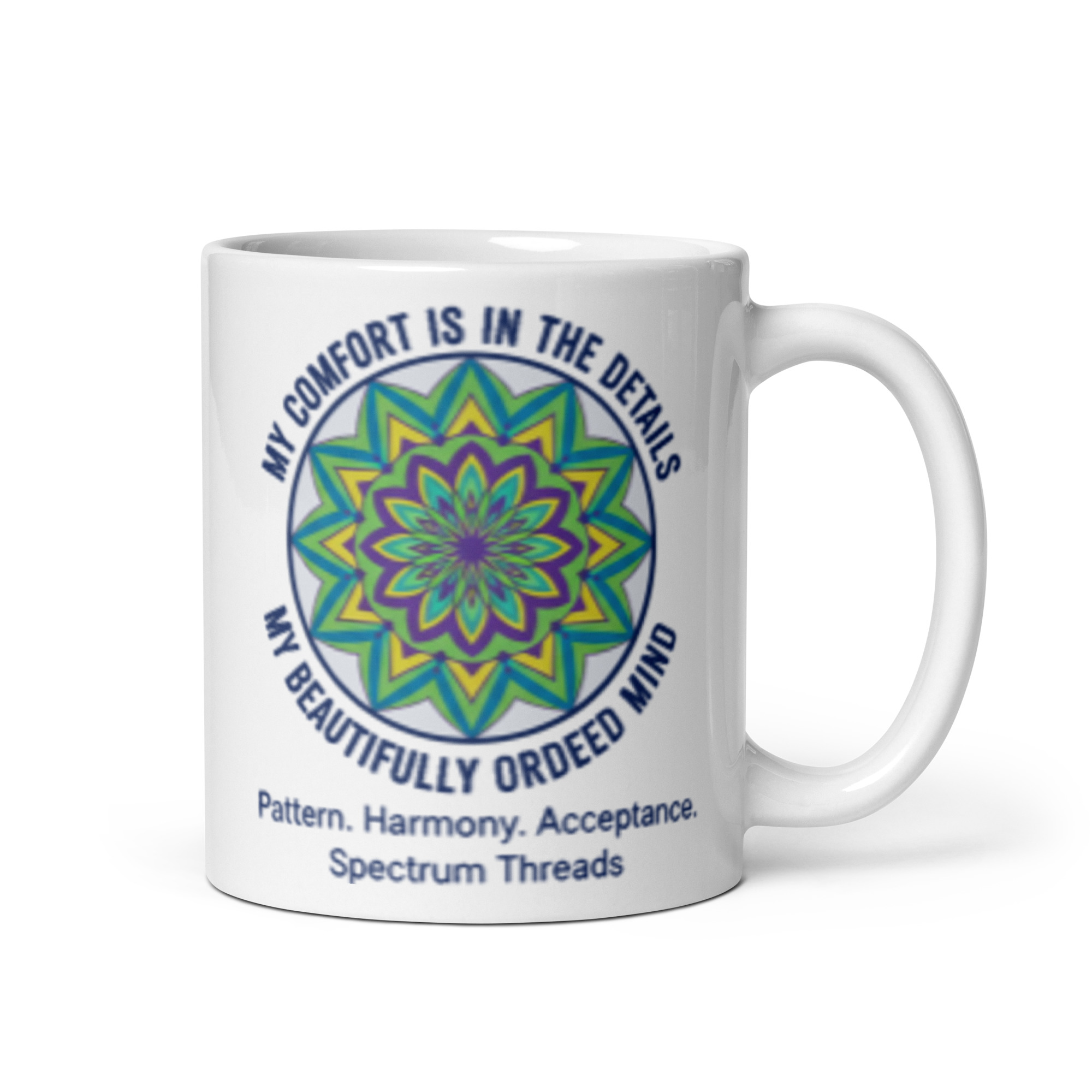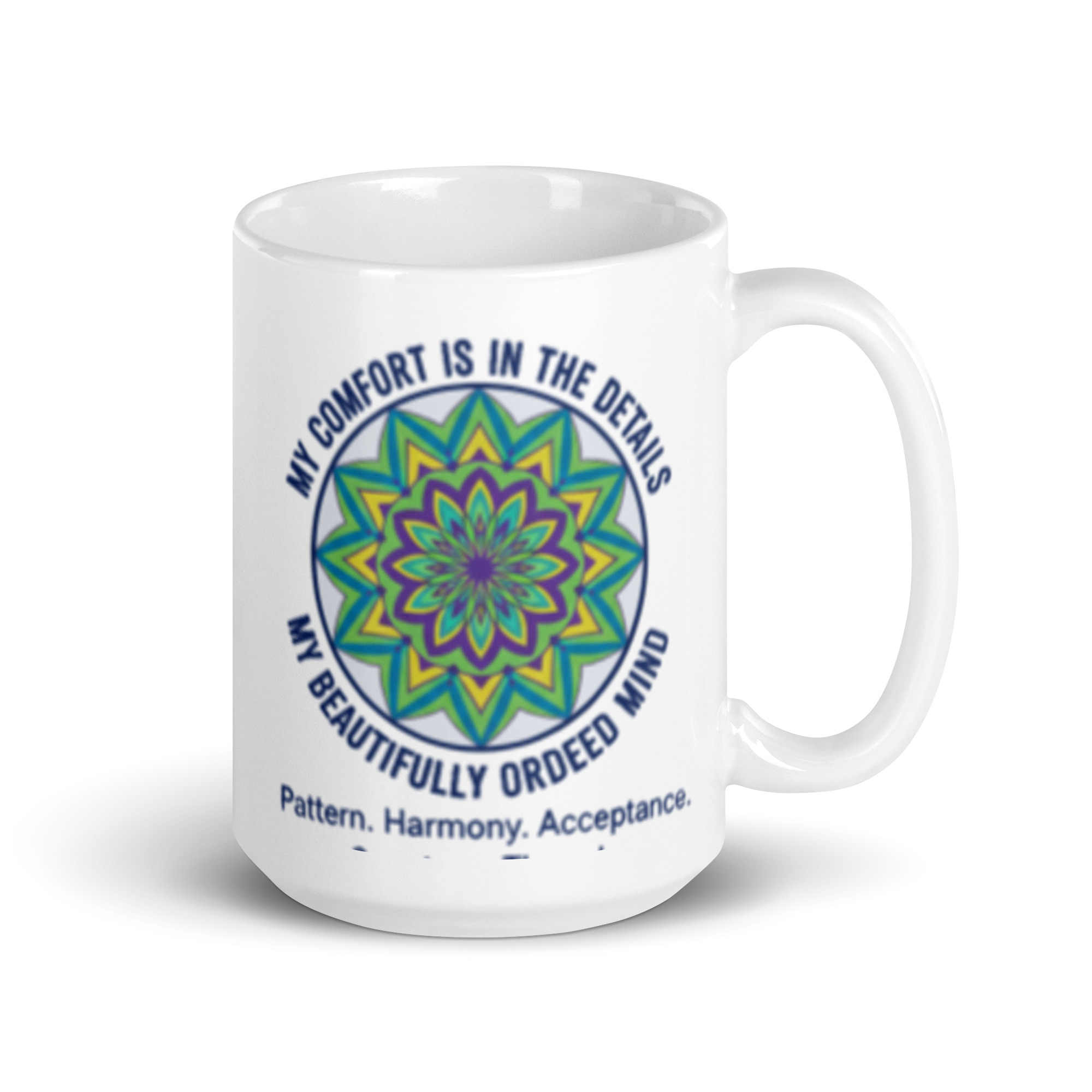 For those who find profound beauty, calm, and joy in the intricate patterns and elegant order of the world, our “”My Comfort is in the Details”” mug is designed just for you. This ceramic mug celebrates the beautifully unique neurodivergent mind that thrives on precision and harmony.